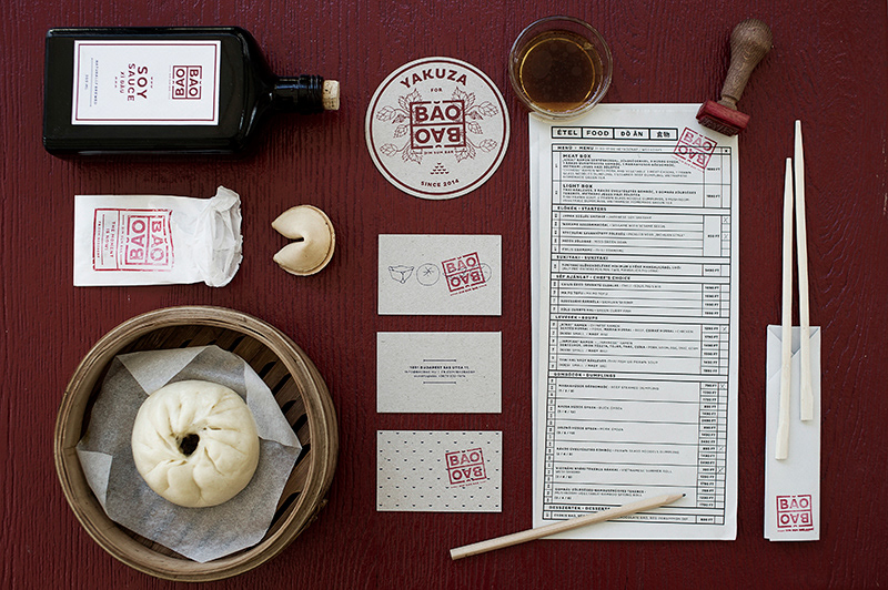 I have made a dozen hand drawings during my Asian journey therefore these sketches became a starting point of the interior’s imagery including the dim sum reference drawings which were painted on the wall after projection. The cooking processes are indicated on different labels as well, all using a typical neon red tone specifically present in the Vietnamese urban landscapes and hand-painted glazed signs. This tone is in frequent use in Vietnam with food-stamps as well, they mark different kind of fillings with the stamp used on the noodle’s bare surface. The origami folded chopstick cases and the bamboo streamer pots wear the same neon red logo which was applied by tampon printing. The menu card is from disposable paper on which the guests are able mark their order. There is a farewell surprise – when leaving every guest gets a fortune cookie in which the content is carefully dedicated to the truth whatever it may be.