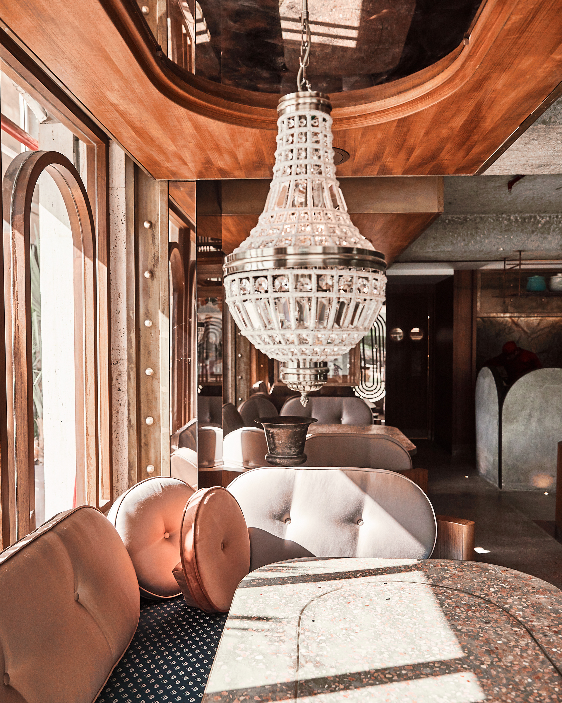 We always fall in love with seeing our designs incorporated into every aspect of a brand. One of the details we love most is seeing the logo we designed embroidered onto the dark red kaftan the waiters wear. We also love seeing the mixture of the collages and the cardamom patterns printed onto the menu pages and take away items.