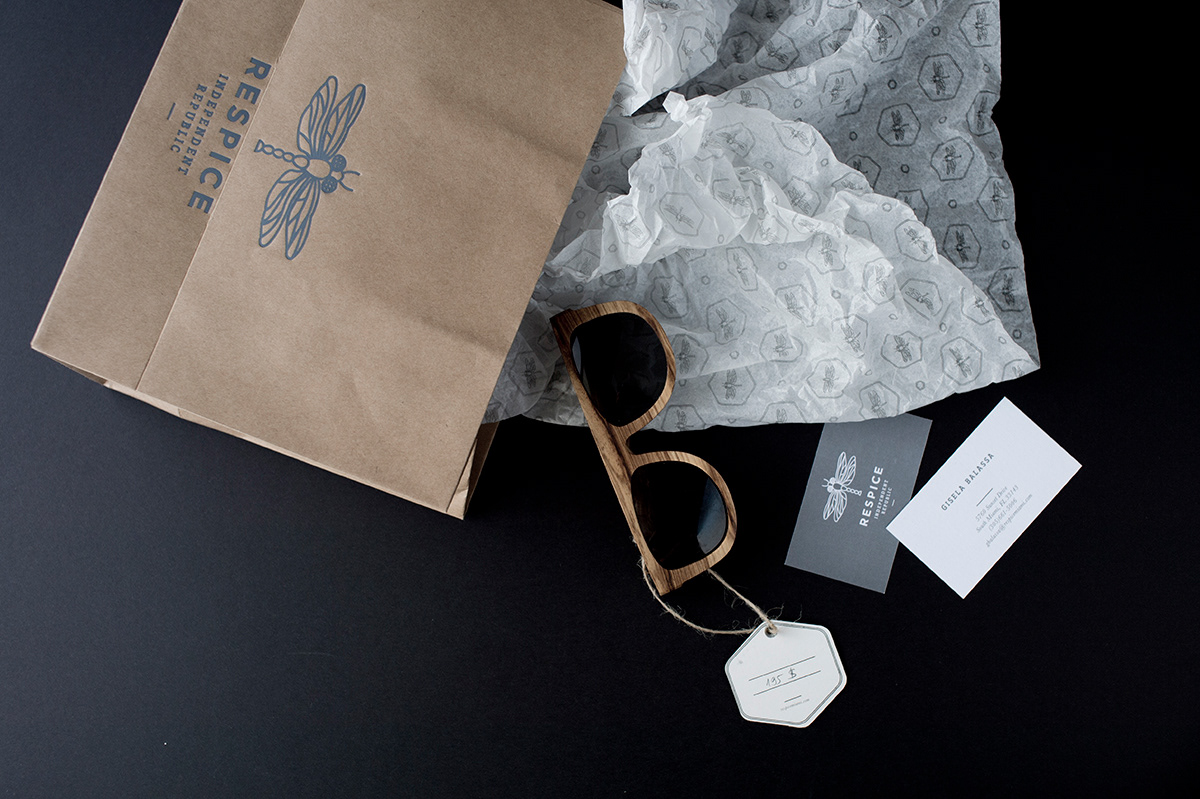 Respice means "to look" in latin language. If taken literally, re-spice could also mean to spice up again, spice up the life with apparels and accessories. The costumers can find plenty of different eyewear brands from around the world in the store, so we were looking for a symbol that is easily associated with the product. The eyes of the dragonfly are iconic, thats why we chose this beautiful little insect as the sign of the logo, as it has a remarkable eye structure.